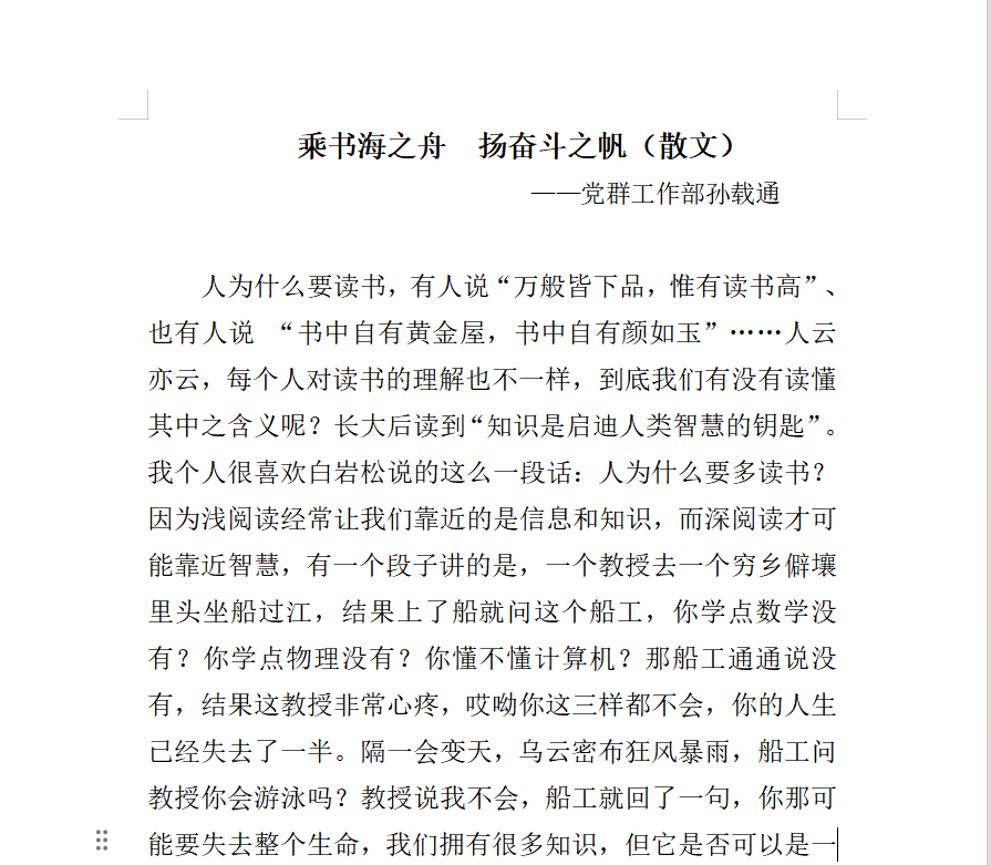 一篇篇精鑫撰写的阅读征文作品,凝聚了职工们对于阅读的热爱和感悟,通过文字记录与书籍的美好邂逅,记录下那些令人陶醉的阅读瞬间。通过这些文字,感受到了阅读带来的力量。