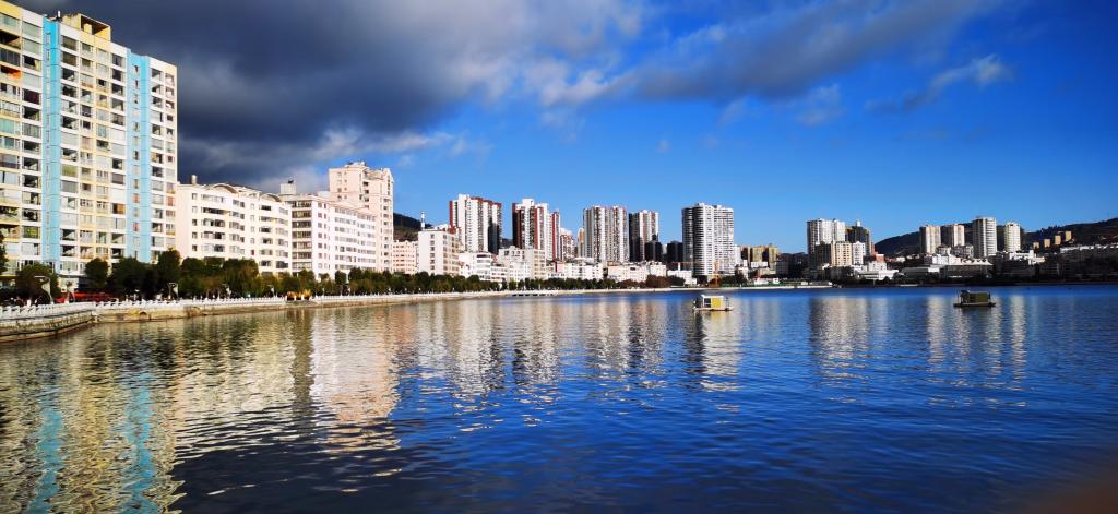 金湖西岸停列车,引得路人纷驻足。