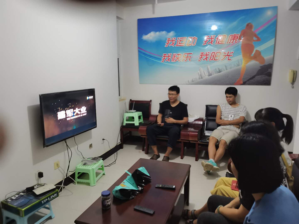 7月31日晚,老虎山酒业公司团支部组织宿舍青年职工在职工小家观看《建军大业》。