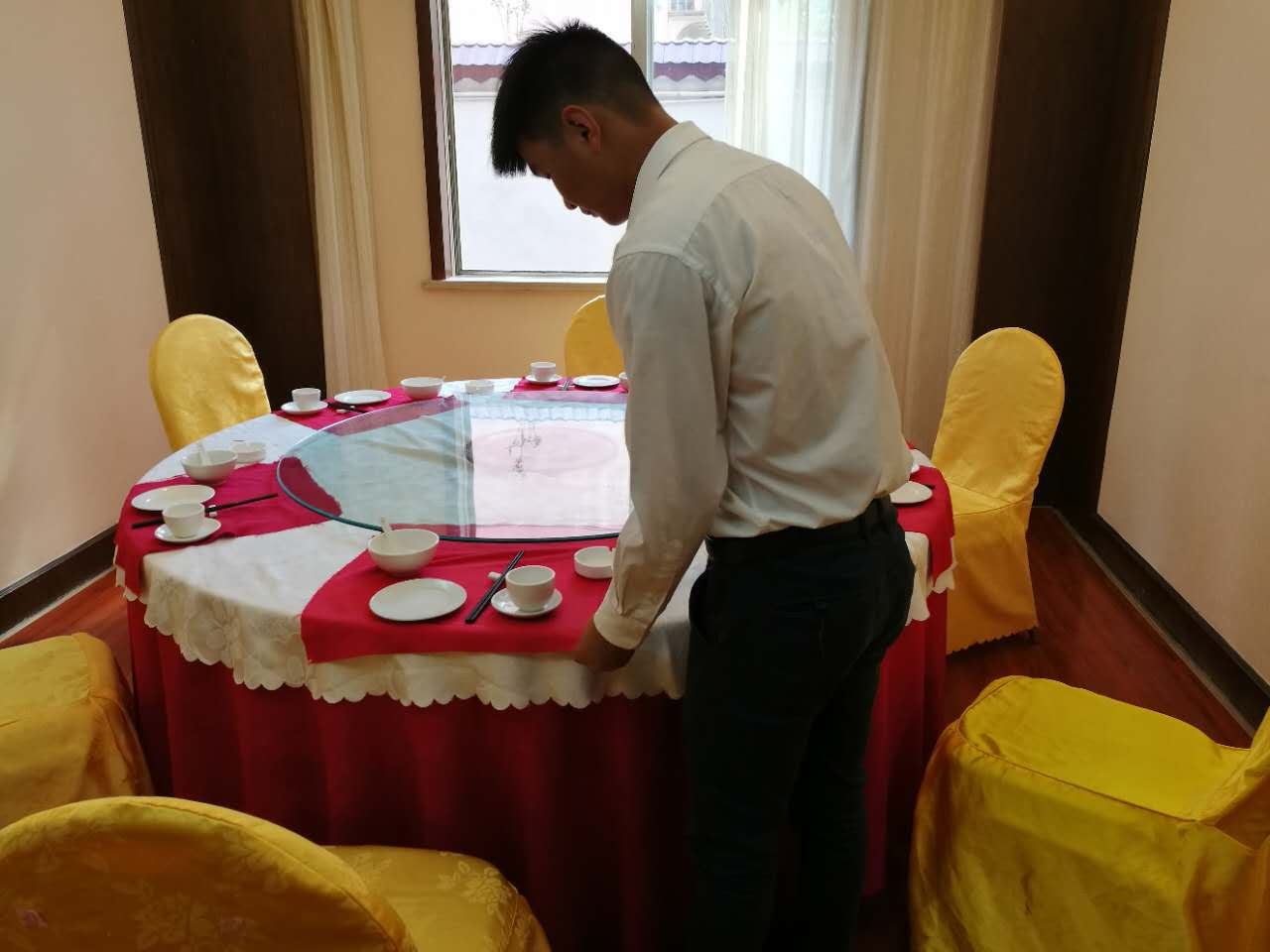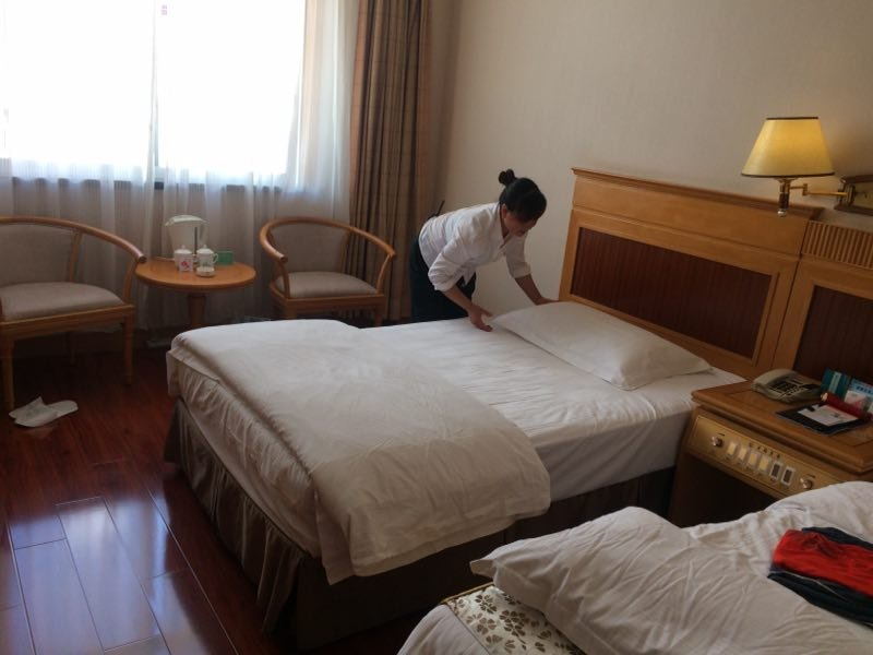 来自餐饮部和客房部的9名优秀青年职工充分准备、分工明确、摆放桌布、擦拭餐盘、整理床铺、房间卫生保洁、厕所清洗消毒,每个细节都不落下,每个步骤娴熟流利,整个过程顺畅有序。各个部门充分利用工作之余,大力开展互帮、互学、互助、互传活动,形成了优质文明服务的风气,树立了良好的服务形象。
