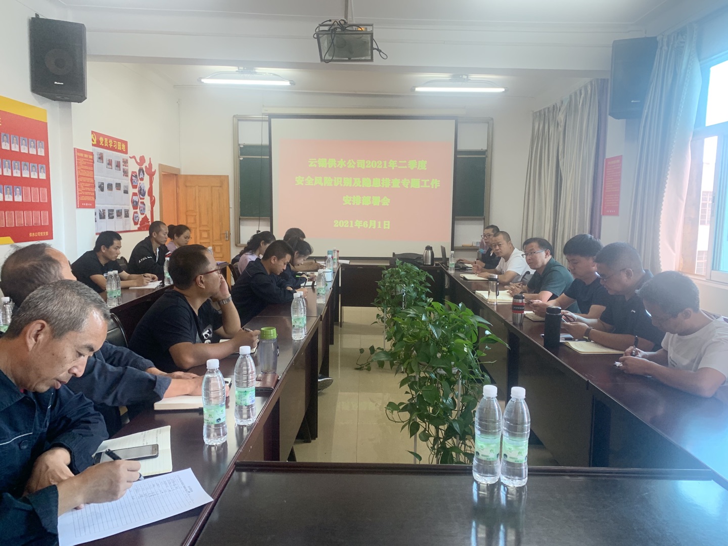 根据5月31日云锡控股公司安全环保部、广元公司对供水公司各站点进行为期一天的“双重预防机制”帮扶指导工作所指出的问题及指导方法和路径,供水公司于6月1日上午召开二季度“安全风险识别、隐患排查”专题工作部署会。供水公司领导班子成员,各分公司、部门负责人,各分公司安全员等相关人员共22人参加会议。