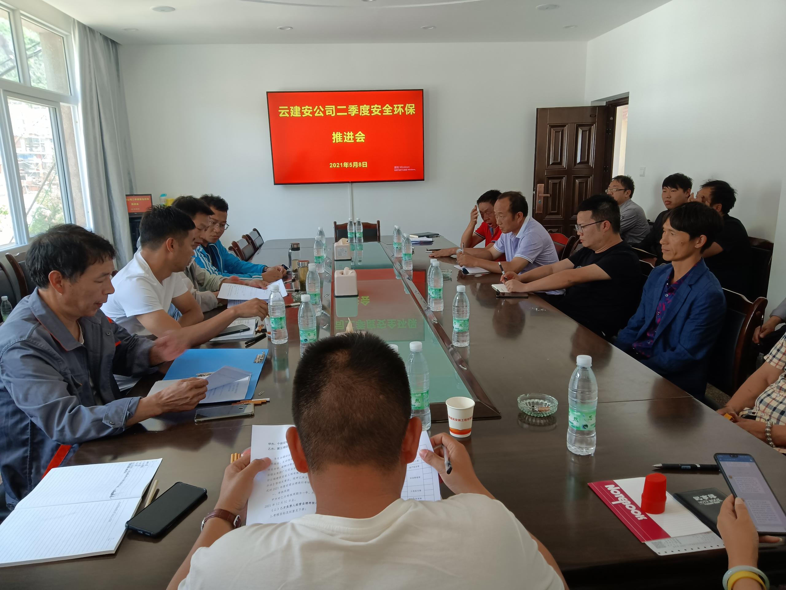 5月8日,云建安公司在党员活动室召开二季度安全环保推进会,通报一季度安全环保考核结果;传达控股公司及广元公司二季度安全环保推进会精神及近期安全环保重要文件精神,对云建安公司劳务分包、专业分包安全管理制度作说明,对下一步安全环保工作进行安排部署及施工现场管理提要求。