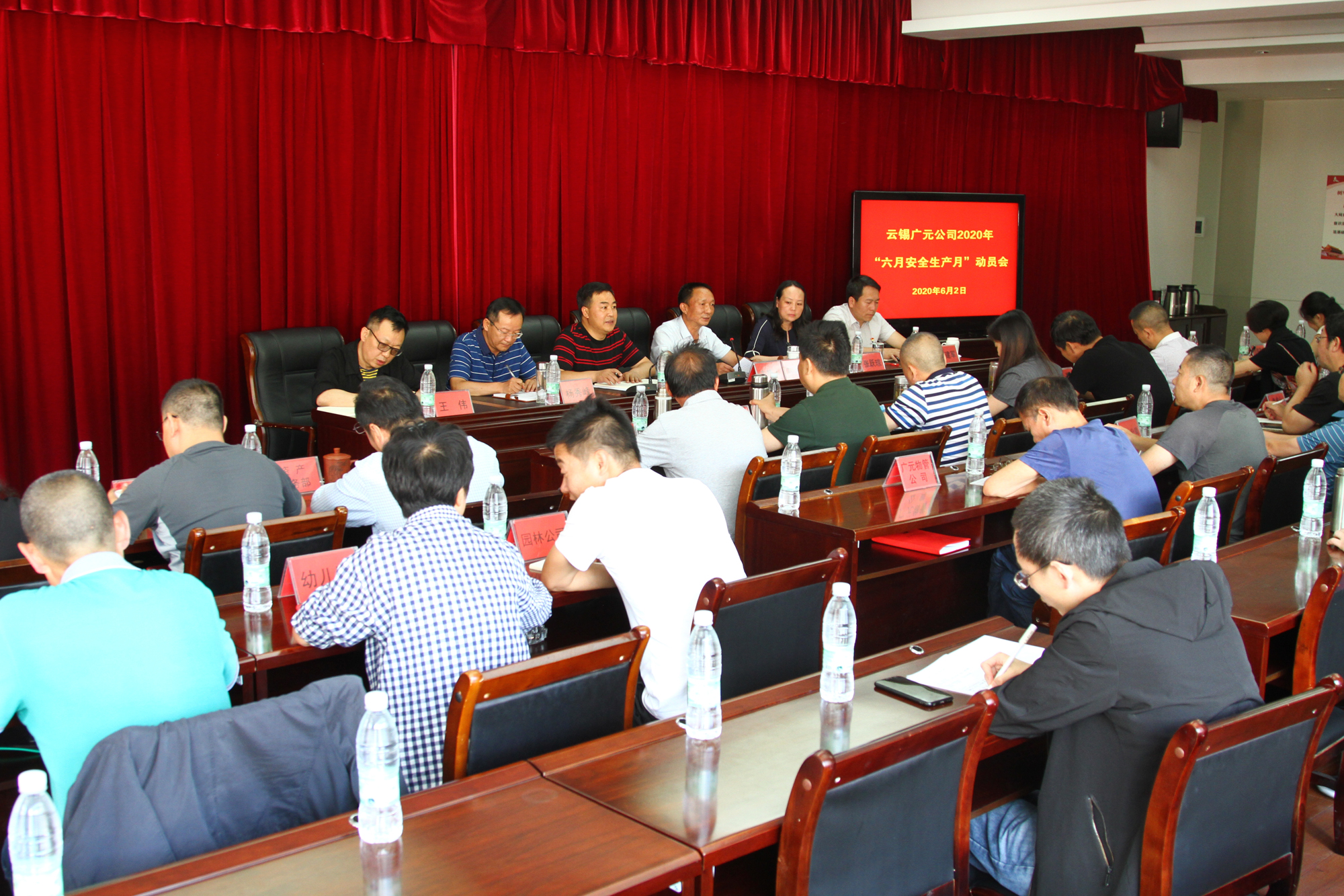 6月2日,广元公司在三楼第一会议室召开“六月安全生产月”动员会,安排部署2020年安全生产月系列活动,进一步提升本质安全化水平,促进云锡生活服务业安全发展。