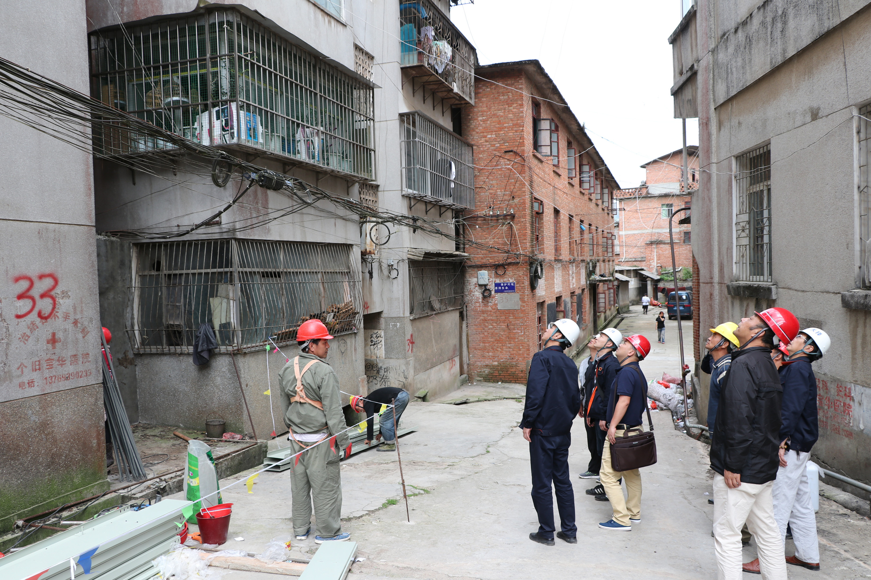 5月8日,建设集团天泽劳务公司、广元公司安环部联合对“三供一业” 维修改造工程的卡房片区、老厂片区、云锡公司机关片区等施工现场进行安全检查。