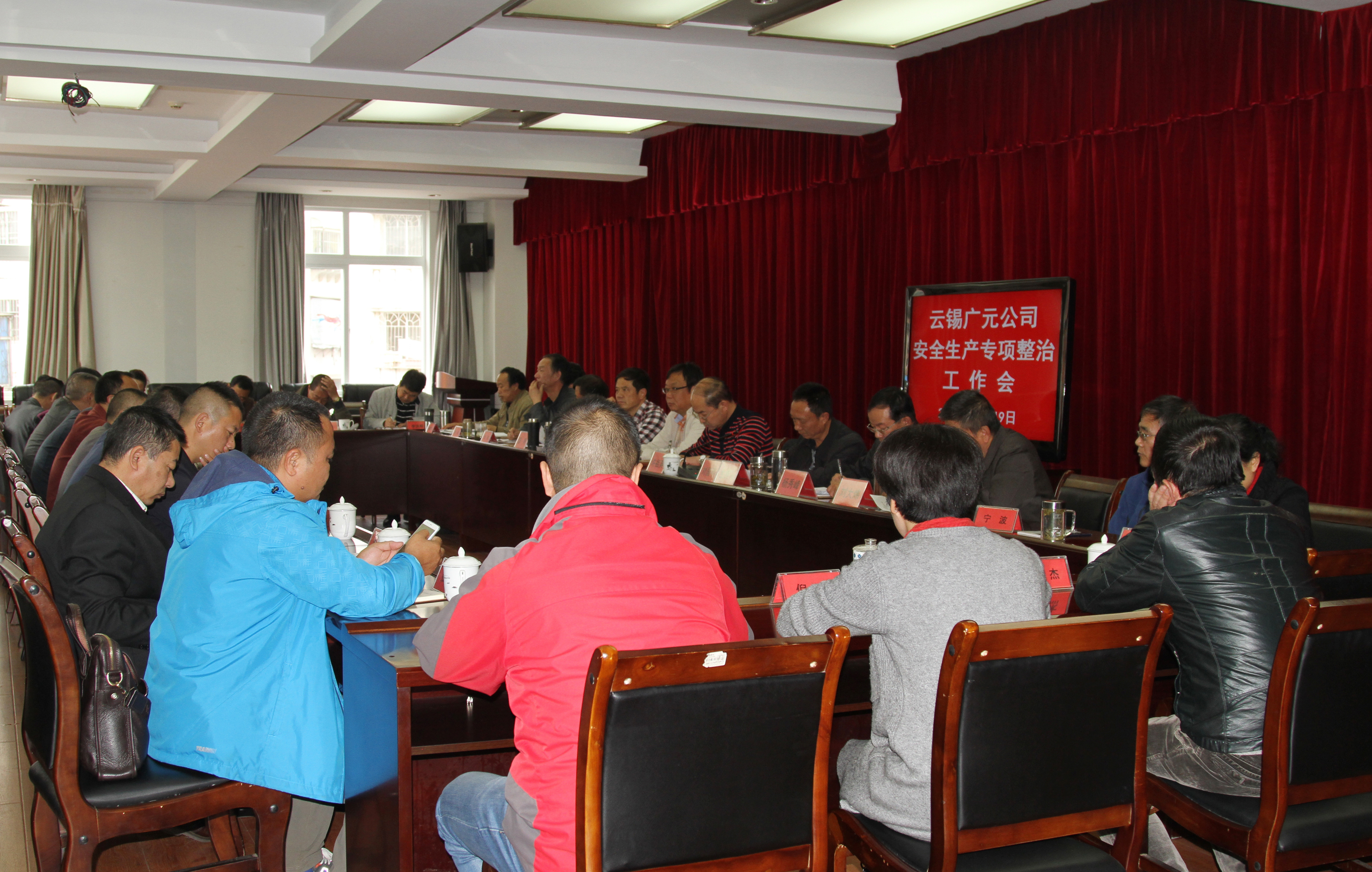 会上,公司副总经理刘大炜首先作广元公司安全生产专项整治工作情况报告,总结了广元公司开展安全生产大检查工作两个多月以来取得的工作成效,阐明了开展安全生产大检查工作查出的主要问题,并根据《云锡控股公司关于组织开展全司安全生产大检查的通知》、《全面持续深入开展安全生产大检查工作的通知》和《关于持续开展安全生产大检查工作确保当前至明年“两会”期间安全生产形势稳定的通知》以及10月16日控股公司召开的安全生产专项整治工作会精神和要求,作出以下工作安排:一是强化意识,提高做好当前至明年“两会”期间安全生产工作重要性认识;二是强化巩固提高,认真组织好安全生产大检查及督导“回头看”;三是强化道路交通运输、建筑施工、消防、职业卫生等重点行业领域专项整治,严防各类安全事故发生;四是强化问题和隐患整改,切实做好闭环和痕迹管理;五是强化冬季“四防”防范措施落实,切实做好道路交通和消防工作;六是强化警示宣传,充分发挥云锡安全微信平台舆论引导作用;七是强化职业卫生与安全生产一体化管理,有效防范职业危害事故;八是强化应急值守,及时有效处置各类事故和突发事件。