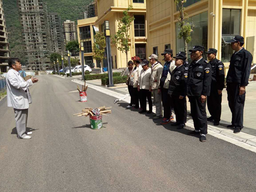 为防患未然,加强小区员工的消防安全意识,提高防火逃生技能,2017年5月18日上午,昆明物管公司在丽阳星城二期A2地块小区举行消防安全演练。此次活动邀请了属地龙院社区领导到现场指导工作。