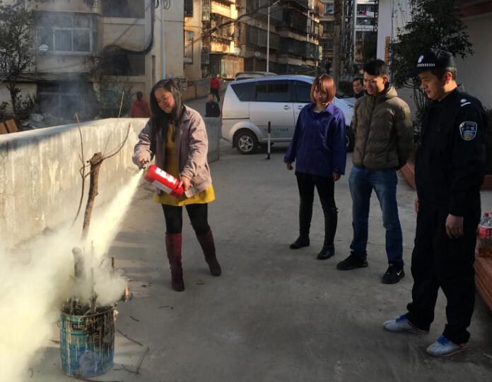 广元物管安全员杨勇结合公司特点,向大家讲解了现场消防安全预防知识,介绍了现场火灾防范、逃生及干粉灭火器的储存、使用方法和注意事项,以及初起火灾的扑救原则等。随后,指导全体岗员实践操作干粉灭火器灭火。