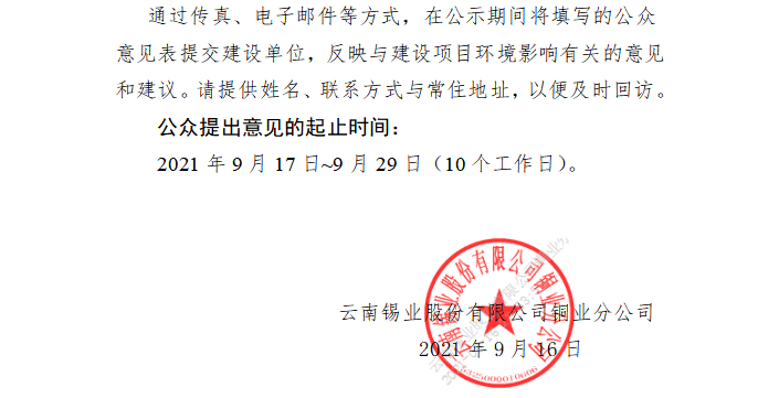 下一条:云南锡业股份有限公司锡冶炼异地搬迁升级改造项目(变更)公示