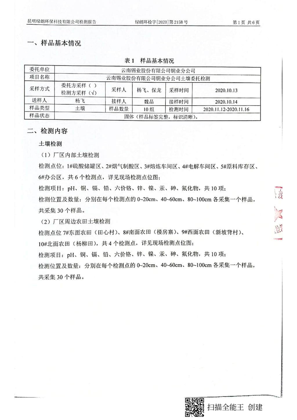 云南锡业股份有限公司铜业分公司土壤检测报告(2020年).pdf