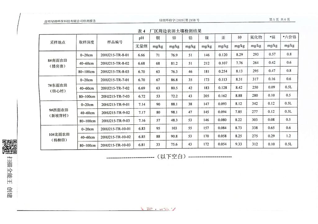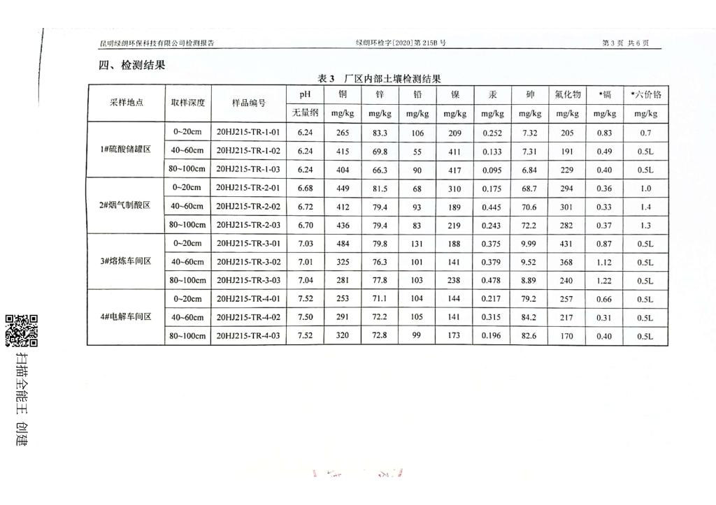 云南锡业股份有限公司铜业分公司土壤检测报告(2020年)公示