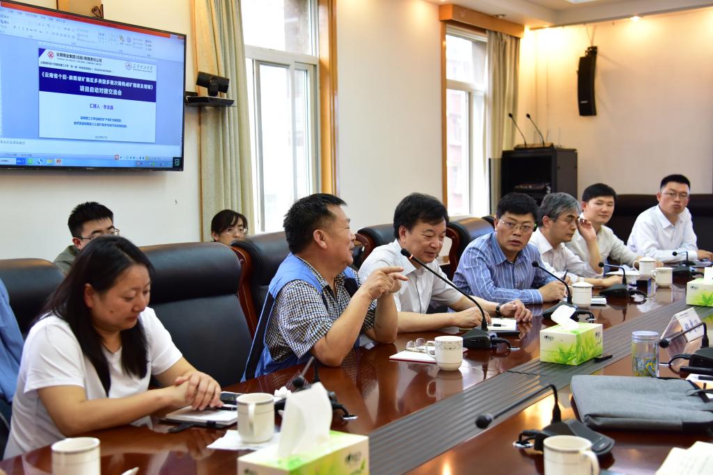 7月1日,昆明理工大学国土资源工程学院教授李文昌一行到云锡开展校企合作项目考察交流,控股公司党委副书记、副董事长、总经理程睿涵与客人座谈交流。