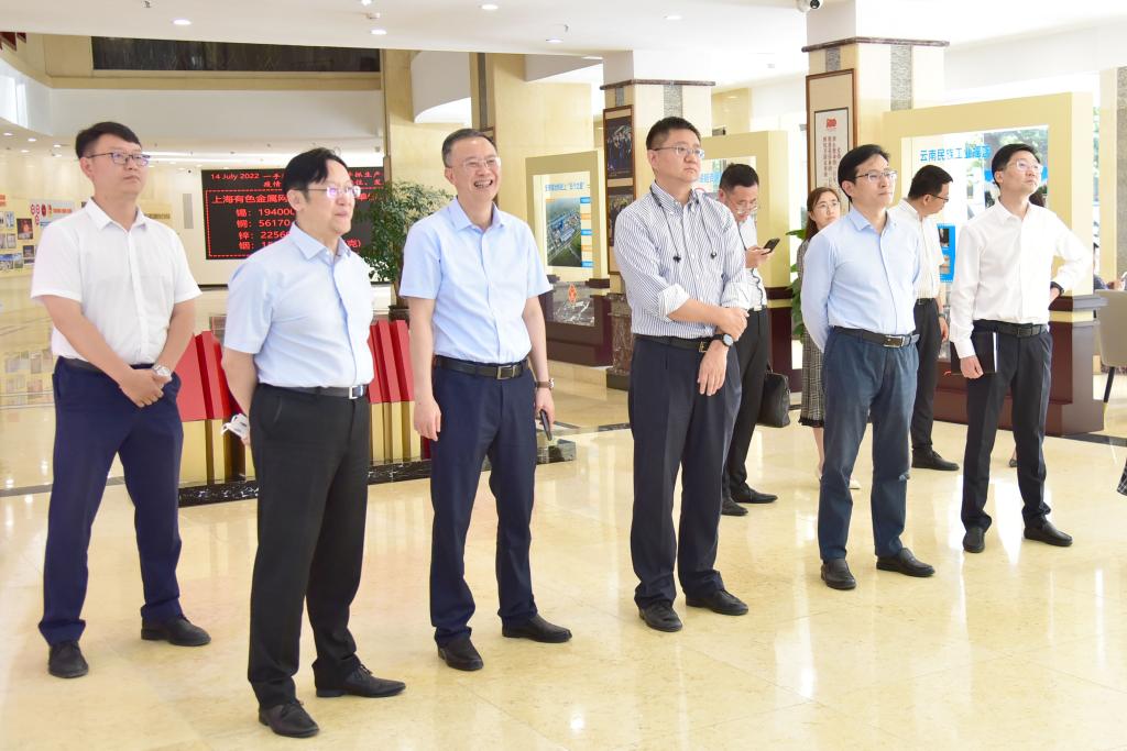 会前,程曦一行参观了云锡昆明总部一楼展厅和全产业链数字化运营管控系统。
