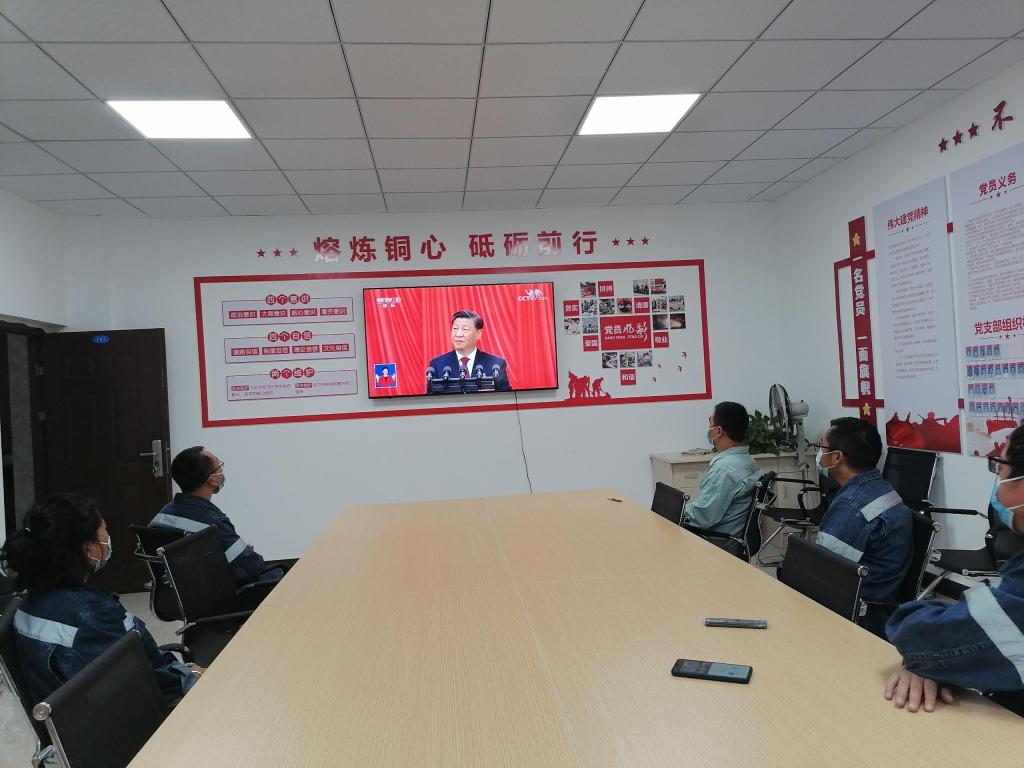顶吹炉党员工序长白金龙在收看了会议盛况后表示:“作为一名新时代党员工序长,我将深入学习领会报告精神,把党旗插到技术创新、抗疫稳产和职工群众最需要的地方,让党旗所指成为全员行动所向。”