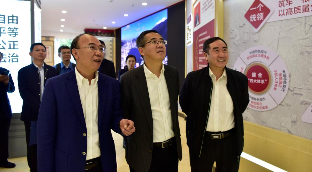 会前,梁强一行观看了云锡宣传片,参观了昆明总部一楼展厅。