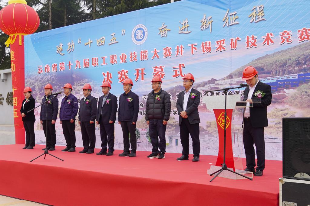 10月31日,云南省第十九届职业技能大赛锡采矿技术决赛在老厂分公司正式拉开决赛帷幕,来自云南建投矿业工程有限公司、大屯锡矿、卡房分公司、老厂分公司的35名采矿专业技术人员在前期初赛、复赛基础上一决高下。云南省总工会技术创新和职工素质建设工作办公室二级调研员彭启瑞,控股公司党委副书记、工会主席姚家立出席开幕式。