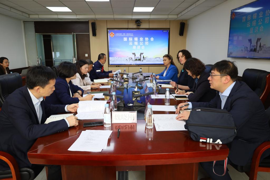 国际锡协一行听取了云锡的历史沿革、发展现状以及未来云锡“3815”战略目标等情况介绍,在锡材公司科技创新展厅了解了云锡精深加工板块的产品种类、产销量、市场应用等方面的情况。