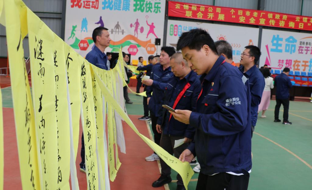 锡业股份、老厂分公司、个旧市老厂镇在分公司职工体育活动中心联合组织开展了“安全宣传咨询日”活动。活动通过摆放展板、发放宣传资料及防灾减灾科普知识资料、安全知识竞猜等形式开展安全生产法律法规、安全科普常识及安全生产知识方面的宣传,参加活动的人员还共同观看了《“安全生产月”公益宣传片、井下火灾逃生要点科普片》,在“人人讲安全,个个会应急”活动主题横幅上进行了签字。通过“安全宣传咨询日”活动,进一步提高干部职工的安全法律法规意识。(李伟华)