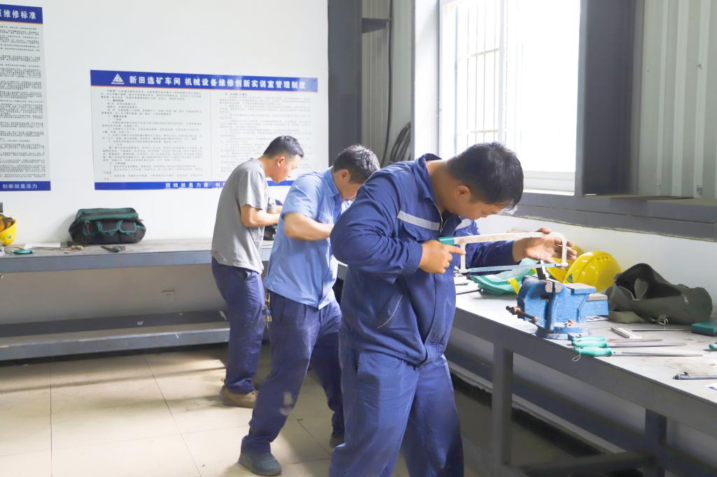 在悉心“育”才上做好文章,让人才有劲头。新田选矿车间党支部把党建工作与提升党员、职工技能及素质能力相融合,创新举措,积极探索教育培训新路子,在“培育”上下足功夫。实施“专业培养和综合培养同步进行”的人才培养方法,着力提升党员、职工技能及综合素质,为技能人才的培养提供坚实基础。以首席操作工、技师、骨干、工程师、内训师各专业技能人才为首,围绕选矿、机械、电气、党建、安全环保、综合管理等方面制定年度每人不少于两场内部培训计划,通过理论课堂与现场教学相结合的方式,为员工提供全面的培训。2023年计划开展内部培训共计44场,累计102.7学时,覆盖职工915人,截止6月底共开展培训27场,覆盖职工586人,累计59.4学时。选派有资质的专业技术人员担任师傅,助力知识和技能薪火相传,制定全年“师带徒”计划,加强对新进员工、技能操作岗位员工和转岗人员的技术技能培养。2023年签订师徒21对,其中新进员工4对,转岗5对,再学习12对,主要专业涵盖选矿、机械、电气专业。大力支持公司开展企业新型学徒制,打造“企校双制、工学一体”的培养模式,配合提供产教融合实操场地,在工学不误的基础上为职工“补缺口”,“助成才”,2023年共推选新型学徒23人,其中重选工种8人,浮选工9人,工程机械维修工5人。鼓励职工参与岗位练兵、技能比武竞赛,通过以赛促训,以训促赛方式,营造“比、学、赶、帮、超”氛围,在实践中检验技能提升成果。2023年共有129名职工参与竞赛,其中电焊工44人,钳工8人,磨矿工22人,浮选工18人,重选工37人。车间大力挖掘专业技术及特殊造诣的实用人才,对技能高超、业绩突出的职工进行推举聘任,2023年共推聘专业技术、业务职工44人,其中高级技术骨干2人,技术骨干4人,高级技术/业务员12人,中级技术/业务员13人,初级技术/业务员13人。