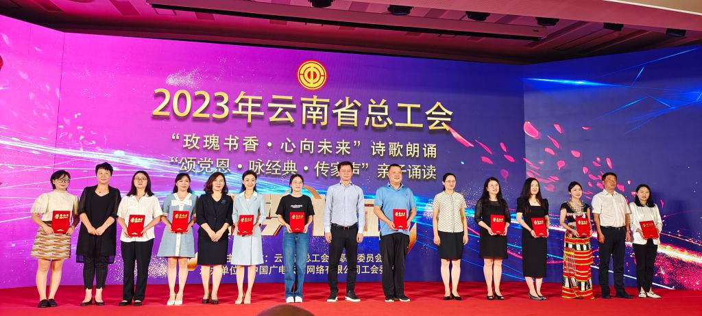 8月8日,2023年云南省总工会“玫瑰书香·心向未来”诗歌朗诵比赛和“颂党恩·咏经典·传家声”亲子诵读颁奖仪式暨展演活动在昆明新闻中心演播大厅举行。