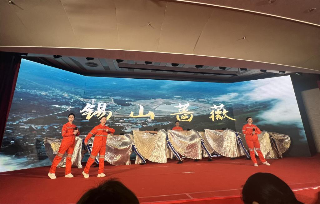 展演活动现场,对荣获一等奖的作品进行了颁奖,同时优选了11个参赛单位和家庭代表进行了展示展演。卡房分公司职工表演的诗歌朗诵《锡山蔷薇》作为压轴节目参加了展演活动。舞台上,卡房分公司职工们用自己真情实感的朗诵充分展现了云锡人勇担“国之大者”,乘着党的二十大春风,在产业工人队伍建设改革的进程中,为云锡创建锡铟行业世界一流示范企业忘我的拼搏,唱响了与百年云锡共同砥砺奋进的“劳动者之歌”。