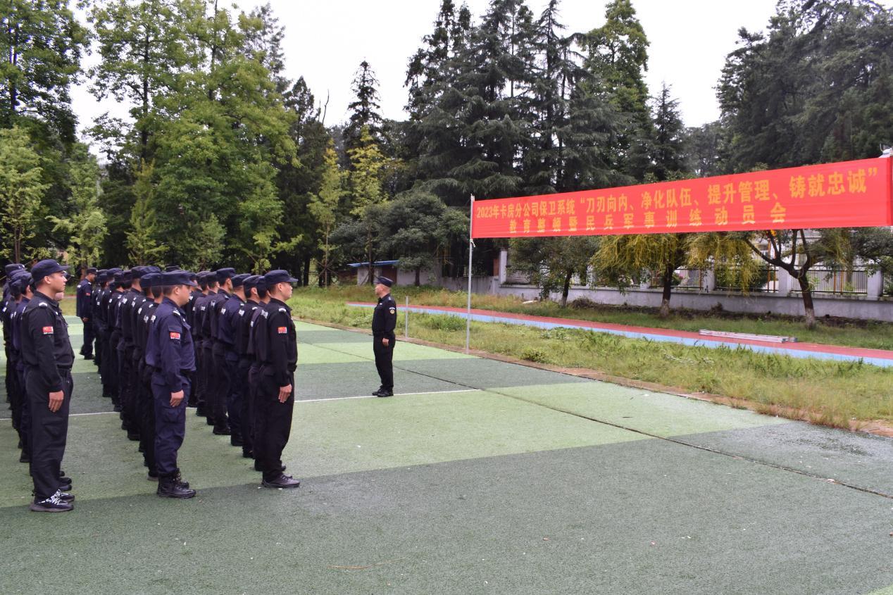 磨砺尖兵,在“建”字上下功夫。以“五个一流”为目标,锤炼保卫人员“忠诚干净担当”的政治品格。坚持开展军事训练,促进队伍能力提升,结合作风效能革命,不断强化参训队伍的纪律作风建设和军事技能本领,锤炼保卫人员“四个特别”精神面貌,用实际行动在护厂护矿、综治维稳、践行担当作为。与卡房镇派出所联合开展夜间紧急拉练和“打非治违”行动2次,坚决做到“拉得出、冲得上、打得赢”,全力维护分公司生产经营秩序稳定。