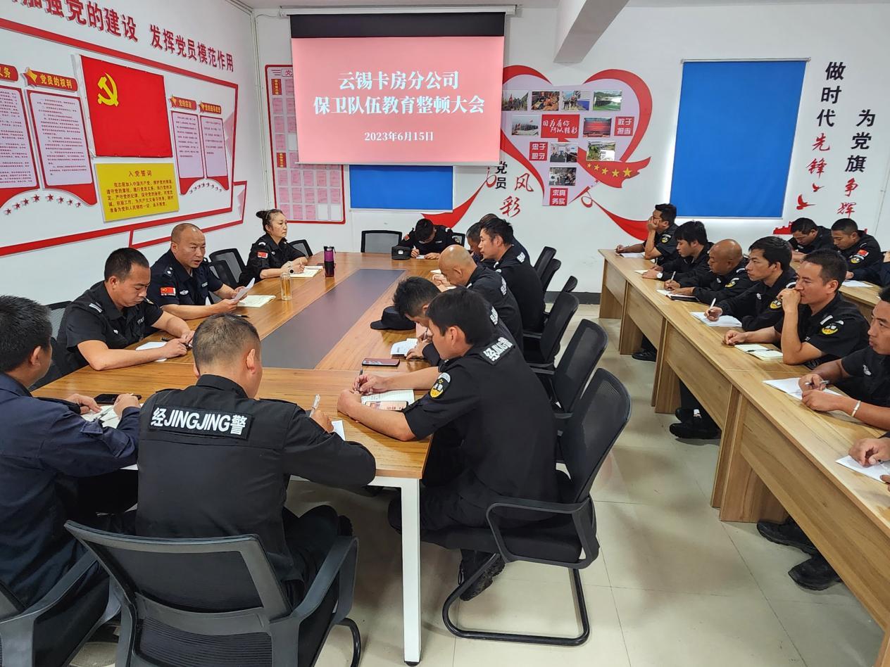 卡房分公司保卫部将坚决扛起护厂护矿的主体责任,进一步总结提炼近年来“采不出、运不出、卖不出”的三不出“打非治违”专项行动取得的好经验、好方法,政企共建、警企联动、村企共建,踔厉奋发、砥砺前行,用实际行动夯实地区和谐稳定基础,为卡房分公司高质量发展,为云锡加快创建锡铟行业世界一流示范企业贡献力量。