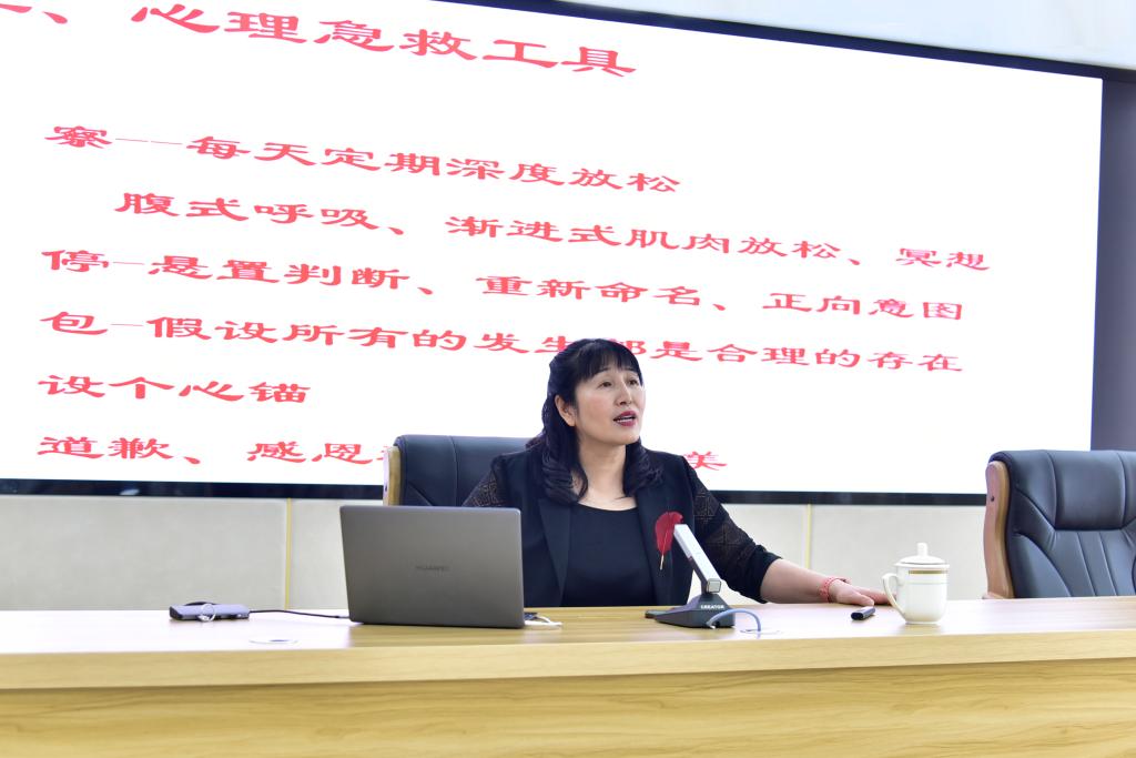云南省劳动模范、“心与心愿”心理健康服务项目首席专家、原云南交通职业技术学院于芳教授进行专题讲座和团体心理辅导。