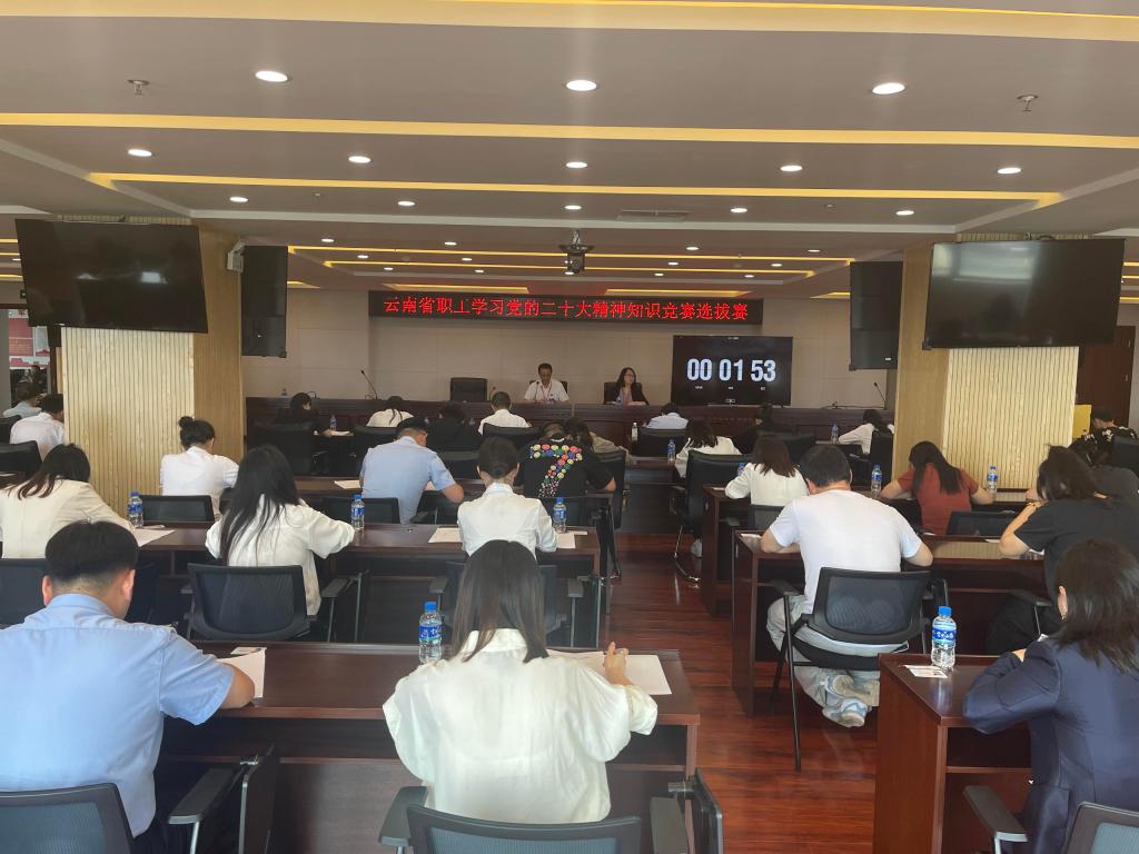 线下竞答争荣誉,线上学习齐发力。本次知识竞赛分为线上知识竞答和线下选拔赛两个阶段,云南省总工会于5月在“云岭职工”APP开展线上知识竞答活动,共有51家州(市)总工会和省级产业系统公司工会组织职工积极参与,覆盖职工达100余万人次。云锡控股公司工会按照省总工会的统一部署要求,广泛动员、认真组织职工积极参与线上的知识竞答活动,截止活动结束共有14568人次参加了线上知识竞答,有效推动了党的二十大精神深入基层、深入职工群众。