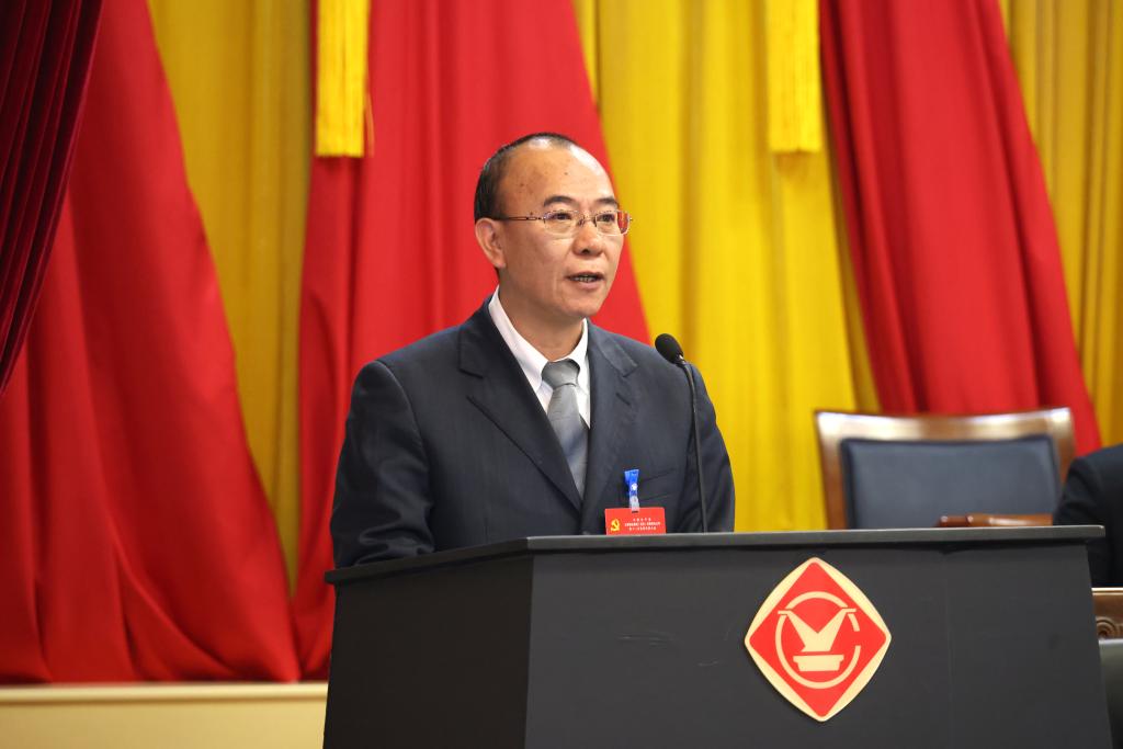 在热烈的掌声中,控股公司党委书记、董事长孙勇向大会作题为《擘画高质量新蓝图 奋进跨越式新征程 为创建锡铟行业世界一流企业矢志奋斗》的工作报告。
