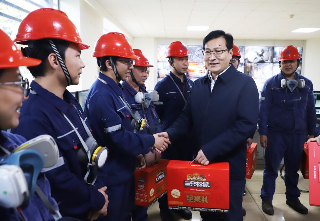 在铜业分公司,韩守礼与大家亲切握手交谈,勉励大家要以控股公司“四会”精神为指引,继续保持昂扬向上的奋斗之姿,一如既往地做好本职工作,加强春节期间的安全环保管理,时刻牢记安全生产的重要性,强化红线意识和底线思维,确保春节期间安全生产形势稳定,为全年安全生产工作开好局、起好步打下坚实基础。(王世娇)