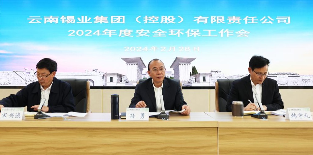 2月28日,控股公司召开2024年度安全环保工作会,总结2023年安全环保工作成效,安排部署2024年安全环保重点工作。控股公司党委书记、董事长孙勇出席会议,要求各单位层层压实责任,打造与“锡铟行业世界一流企业”相匹配的安全环保工作格局,为实现云锡“3815”战略发展目标和党代会确定的目标任务、年度生产经营目标任务,创造安全稳定发展环境。
