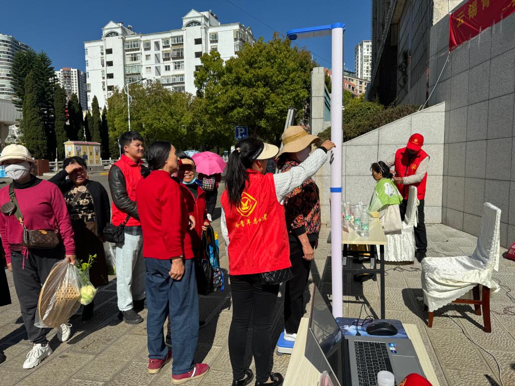 上午9时,锡文化墙前人头攒动、热闹非凡,由各所属团委召集的40名志愿者、提供的22个服务项目组成公益服务“集市”,吸引了不少市民前来“打卡”,耐心、热情、优质的服务获得广大市民好评、点赞。健康检测服务台前,人来人往,大家有序排队,迫不及待地想了解血糖、血压、体重等情况。一旁的视力检测服务也有不少市民驻足,志愿者们一边进行检测,一边普及眼部保健知识。志愿者们不怕脏不怕累,热心为过往的市民磨刀、擦皮鞋、洗眼镜。多名年长的志愿者也加入到活动中,运用专业技术特长,为大家提供义剪、衣物缝补、宝石鉴定等服务。除了各种生活服务外,云锡“媛媛+”志愿服务队还对云锡企业文化进行宣传宣讲。据统计,当天服务市民约1200余人次。