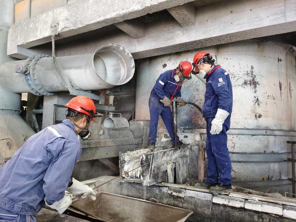 迎难而上“废变宝”。2023年以来,上游单位产能提升,产出中间物料不断增多,加之外部成分复杂渣尘等二次物料的进入,电炉既要处理系统当期产出中间品,又要算好当期投入处理高镉、高锌、高氯物料,进行有价金属综合回收。对此,电炉炉前班组迎难而上,全部组员根据结存烟尘、郴州烟尘、冶炼分公司回收物料等多种物料成分复杂、杂质含量高的情况,克服粗锡质量、炉渣含锡、烟气氮氧化物控制难度大等难题,组成突击队开展攻关,通过混合型搭配、阶段性投入、分段式熔炼,实现了高杂二次原料的集中处理,确保当期产出铝渣及时处理,减少内部二次物料积压,为打响打赢提质增效攻坚战奠定坚定基础。2023年,二次物料处理量同比去年提高20%,多处理二次物料金属锡量700余吨,实现挖潜创效28余万元,实现当月最高产量675吨,创历史新高。
