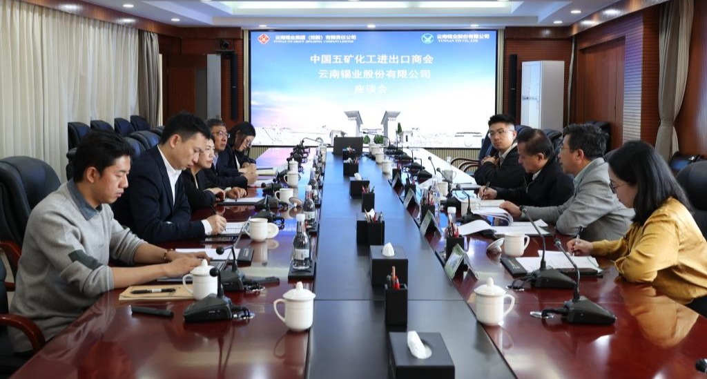 近日,中国五矿化工进出口商会会长江辉、发展部主任孙立会,及伦敦金属交易所负责任采购部业务经理杨茗友一行到访云锡,与云锡控股公司领导杨奕敏、锡业股份党委书记、董事长、总经理刘路坷开展座谈,并向锡业股份颁发《中国矿业供应链尽责管理指南》评估证书。