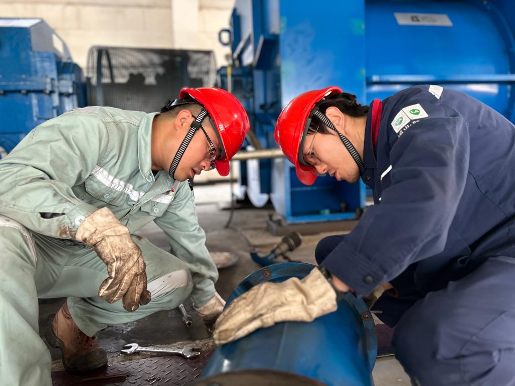 坚持效果导向,争创效益。车间紧扣发电量目标、能耗指标、成本指标三项主要任务,逐月推进指标提升。一是通过开展铜冶炼系统蒸汽平衡控制研究,改进蒸汽管网系统中压蒸汽补充低压蒸汽技术,优化现有蒸汽系统和余热回收系统,解决闪蒸汽外排难以直接回收的问题,进一步回收热力和能源,稳定全厂低压蒸汽供给。项目落地后,余热发电系统除氧器蒸汽使用量每小时减少15%,蒸汽转化率从40%提升至80%,实现余热利用率有效提高,经济效益正逐步显现。二是通过开展天然气在粉煤热风炉中的应用研究,对热风炉燃烧器进行改造,确保在整套设备能够在满足立式磨煤机工艺要求的前提下,充分利用天然气资源,做好能源的综合利用和合理利用,提高洁净能源利用效率,三是通过推行峰平谷用电方案,将粉煤制备生产节奏由峰时段、平时段生产调整为谷时段生产,降低电力交易分时段计价对铜业分公司生产经营带来的压力。经过近三个月试运行,总结夜班磨煤存在的问题和弊端,4月以来,粉煤系统再次调整排班,进一步提升了对粉煤质量的有效控制和系统设备故障处置效率,吨煤单日天然气耗气量持续下降。