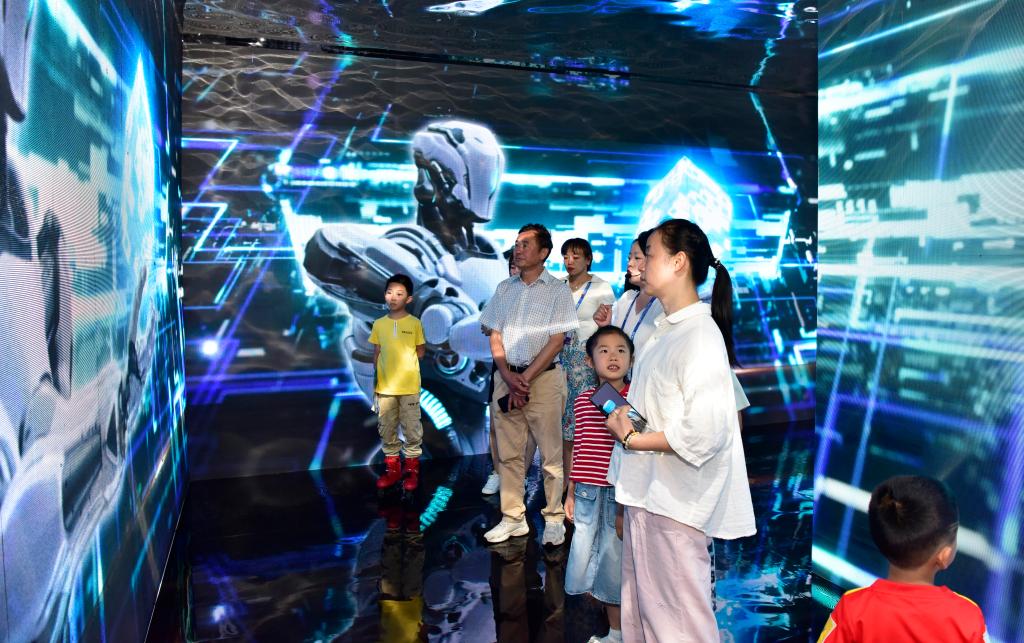 “小朋友,你们知道锡和铟这两种金属吗?它们和我们的生活是息息相关的。我们穿的衣服、家里的电视机等等都离不开锡和铟。”“大家看到的‘锡铟创新之城’里,天上的飞机、路上的汽车、海里的航母,都有锡铟的身影。”时值暑假,家长携萌娃相继“上线”,被云锡展台具像化的模型和视频演示所吸引,在互动玩耍中学习知识、增长见识。