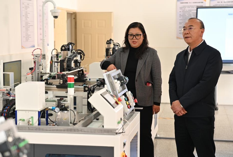 在职业学院,孙勇查看冶金虚拟仿真、京东物流、磁电选矿等实训室,听取办学运营及改革发展情况汇报。