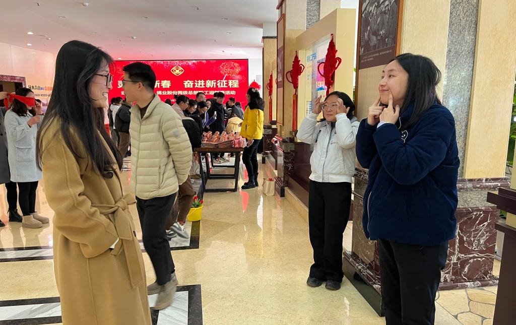 控股公司、锡业股份两级总部工会开展迎新春趣味活动,“你比我猜” 妙趣横生、“盲人插花”别出心裁、“传递幸福” 扣人心弦。参与游戏的职工们时而全神贯注、苦思冥想,时而击掌欢呼、手舞足蹈,默契度在一来一往间升温,欢笑声在周围空气中回荡,恰似灵动音符,奏响新春序曲。红色的中国结,喜庆的春联,处处洋溢着浓厚的节日氛围。(沈欣桥)