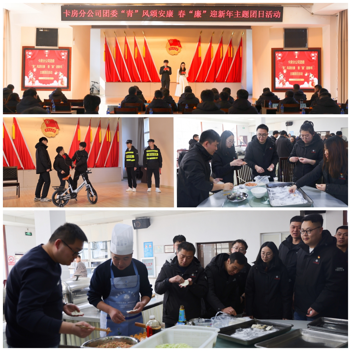 卡房分公司团委依托小品比赛形式,紧扣酒驾醉驾、安全环保、廉洁自律、护厂护矿等题材,精心编排弘扬正能量的节目,赢得现场观众阵阵掌声。赛后,大家参加包饺子活动,现场充满欢声笑语,在温馨氛围中感受新年气息。(陈航)