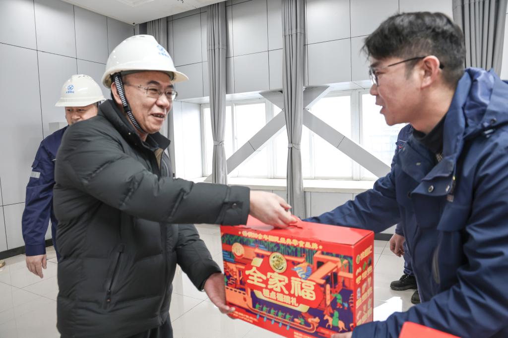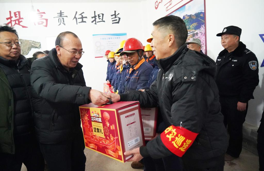 在老厂分公司背阴山冲尾矿库回采再选工业实验基地,孙勇看望慰问值班值守人员,向大家的坚守和付出表示感谢,叮嘱大家站好岗、履好责,祝福大家新春快乐。(李华为)