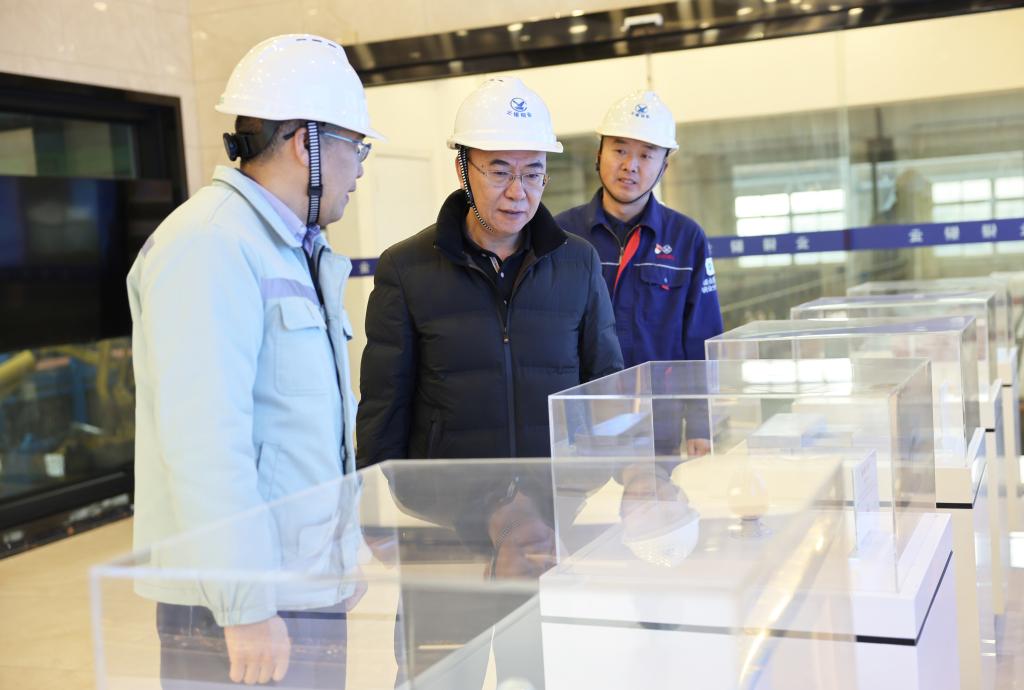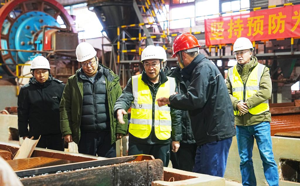 在铜业分公司阳极炉厂房,孙勇与干部职工握手交谈,对大家过去一年的辛勤付出以及春节期间坚守岗位、默默奉献表示感谢,叮嘱大家要立足岗位、精心操作,坚守安全环保底线,确保春节期间安全生产平稳。