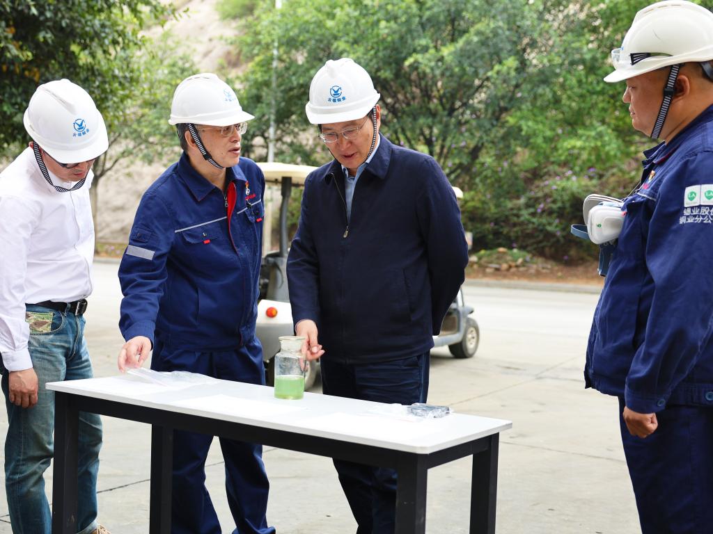 在铜业分公司制酸车间白烟尘工序,韩守礼查看生产工艺流程和硫酸锌、铅铋渣等产品。强调要坚持冶炼多金属协同回收发展思路,围绕“以废治废、循环利用”研究方向,整合科技资源,强化技术研发布局和储备,推动成果转化,加速产业转型升级。(朱晗)