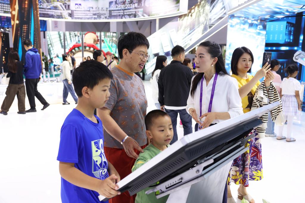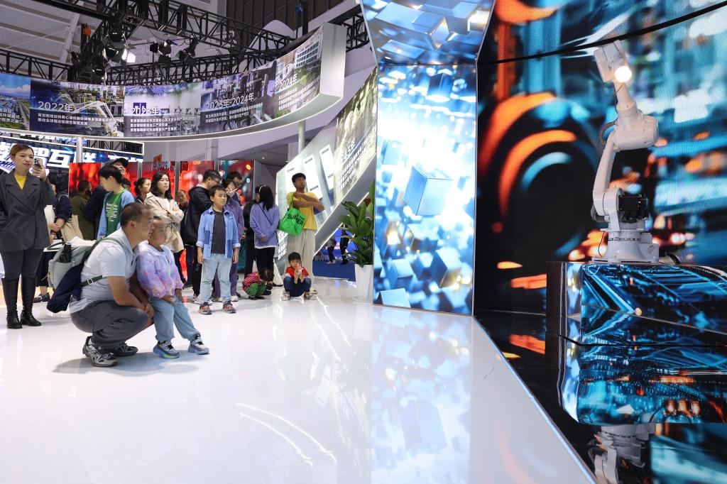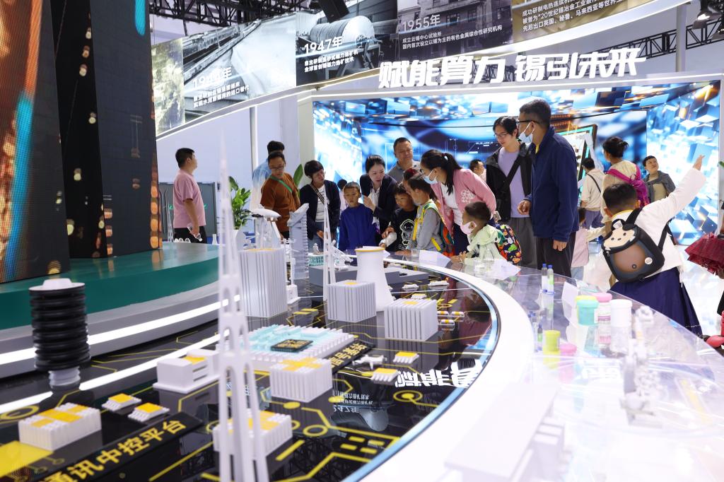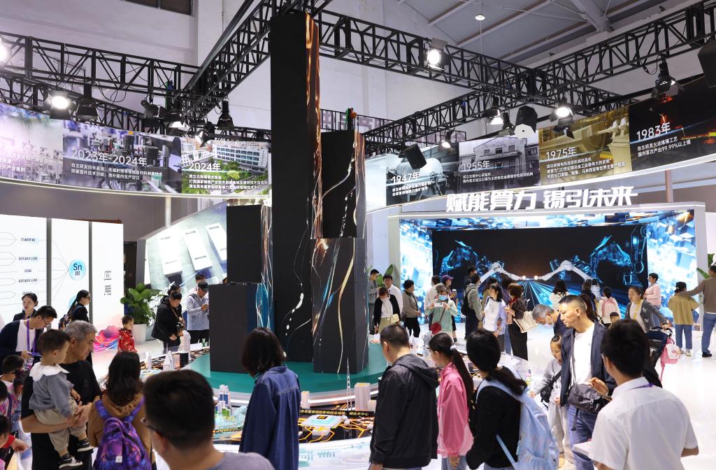 悬浮环绕的科技轴线、“芯联万物”的创新沙盘、沉浸交互的XR算力探秘空间,过去、现在、未来,科技创新与星烁锡铟碰撞的创意展陈……云锡展台化身南博会“流量磁场”,锡铟科技之光持续闪耀。