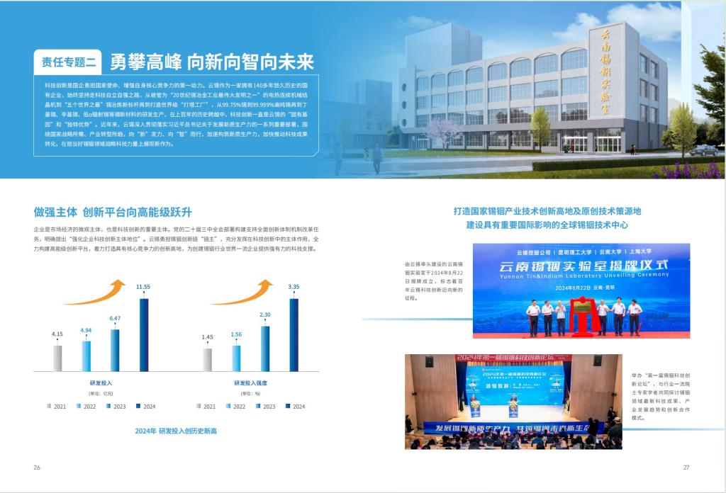 《报告》紧扣“新质引领 智创未来”主题,围绕国家重大战略、行业发展所趋、社会热点关切,全方位展示云锡在全面贯彻新发展理念、加快发展新质生产力、推动可持续发展方面的重要成效,充分彰显“国之大者”的责任担当。