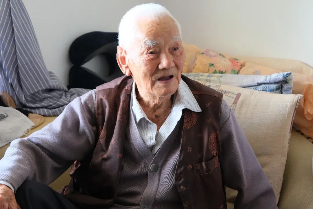 孙勇与姜保安一起追忆那段峥嵘岁月里的抗战经历并祝愿姜保安身体健康、心情愉快。当回忆到1943年加入新四军抗击日寇时,姜保安激动不已,“感谢党,感谢政府,我现在一百岁了,组织依然牵挂着我”。