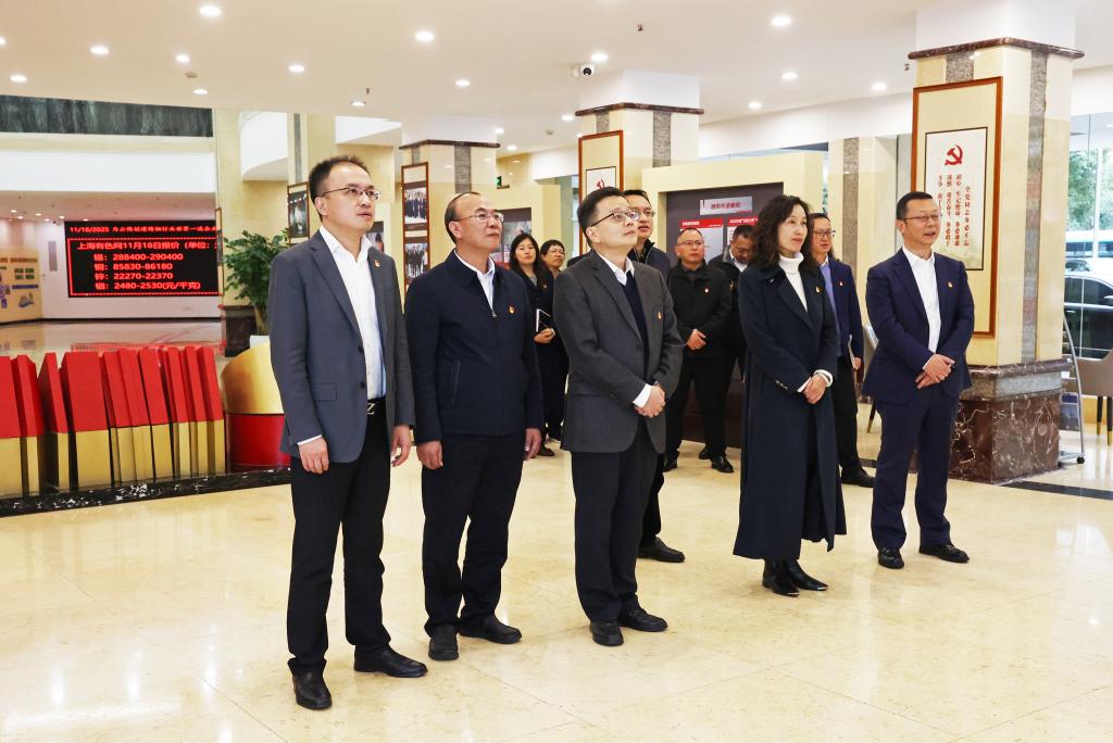 11月18日,中国人民银行云南省分行党委书记、行长,国家外汇管理局云南省分局局长李滔,交通银行云南省分行党委书记、行长陈春晖一行到访云锡,联合开展“党旗引航汇万里 共绘开放新蓝图”联学联建主题党日活动,深入学习党的二十届四中全会精神,深化政银企合作。控股公司党委书记、董事长孙勇,党委委员、财务总监胥翠芬参加活动。