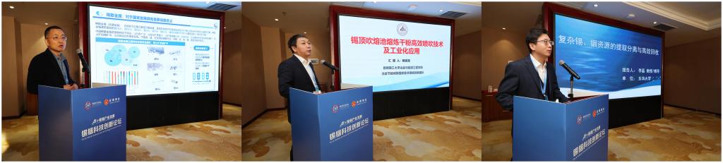 先导科技集团副总裁朱世彬作《稀散金属的战略重要性》报告,系统阐释了铟等关键资源的战略价值与产业链协同发展路径;昆明理工大学杨世亮教授分享了与云锡联合攻关的成果 ——《锡顶吹熔池熔炼干粉喷吹新技术研发及工业化应用》,该技术首次在有色金属冶炼行业内实现干粉物料喷吹入炉,助力锡顶吹熔炼过程高效节能、绿色低碳技术进步;东华大学李磊教授委托锡铟实验室刘雄资工程师围绕《复杂锡、铟资源的提取分离与高效回收》展示了针对低品位资源的高效回收技术体系。