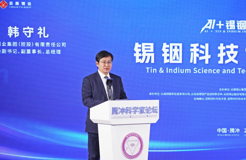 韩守礼主持论坛开幕式并对省委、省政府关怀与支持表示感谢。他谈到,在腾冲科学家论坛“三年小成、未来可期”氛围下,共议锡铟行业发展别具意义,锡铟是关键的“算力金属”,探讨“AI+锡铟”既关乎AI如何赋能产业升级,也揭示锡铟在算力经济中的广阔前景,云锡必将坚定依靠科技创新,携手各方力量,共同推动锡铟产业的发展。