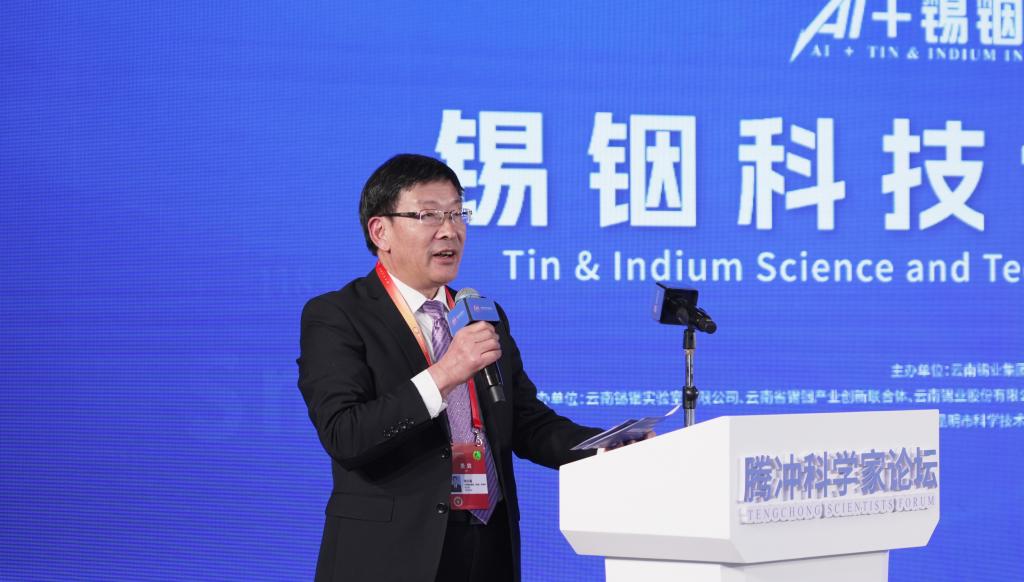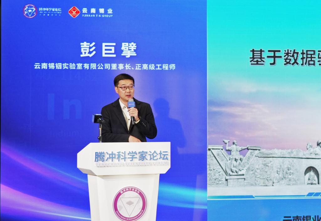 锡铟实验室董事长、正高级工程师彭巨擘作题为《基于数据驱动的锡铟产业技术研发及应用》的报告。