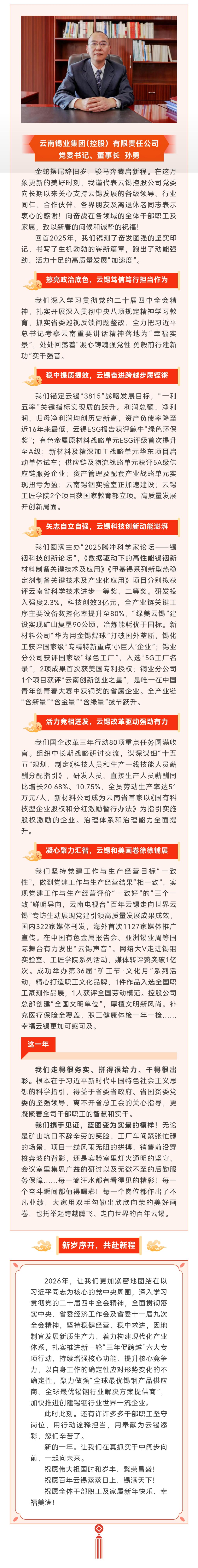 云锡控股公司二〇二六年新年贺词